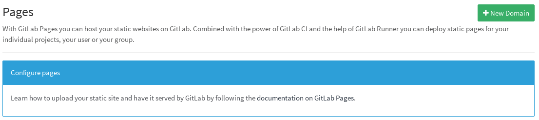 1. Find out the general domain name that is used for GitLab Pages (ask your administrator). This is very important, so you should first make sure you get that right.